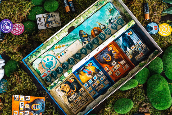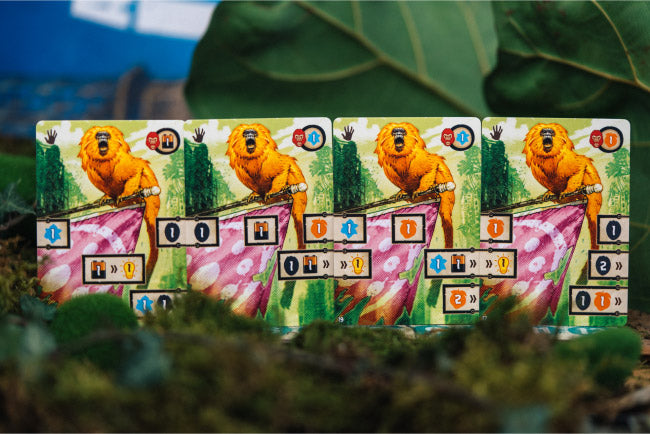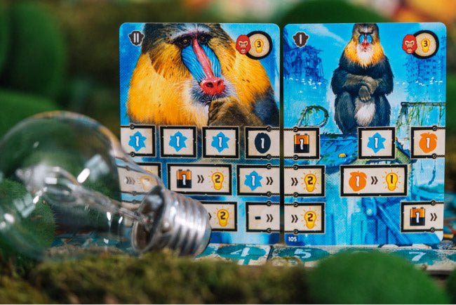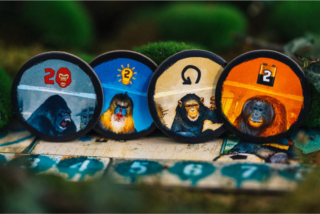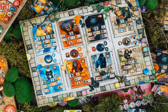 Partendo solo con tamarini, ogni turno combinerai carte per raccogliere risorse e accumulare punti vittoria, attirando nella tua tribù nuove scimmie come potenti gorilla, astuti oranghi, versatili scimpanzé e saggi mandrilli.