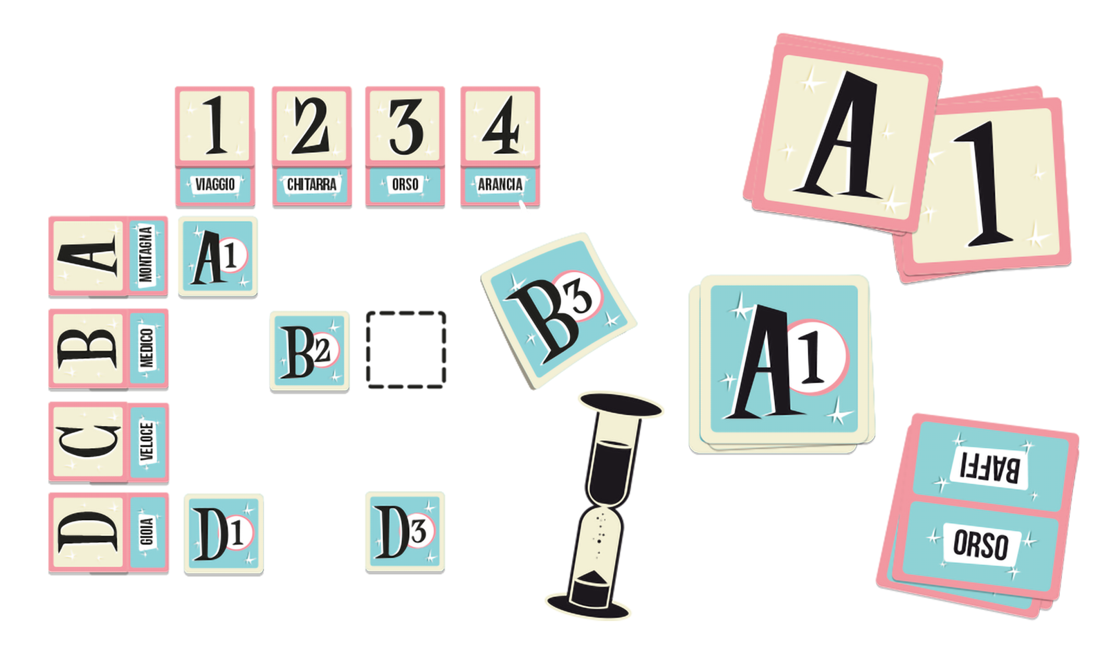 Pensate e collaborate come una vera squadra per riempire il più possibile la griglia di parole, fornendo indizi che rappresentino l’incrocio di due Parole in Codice!