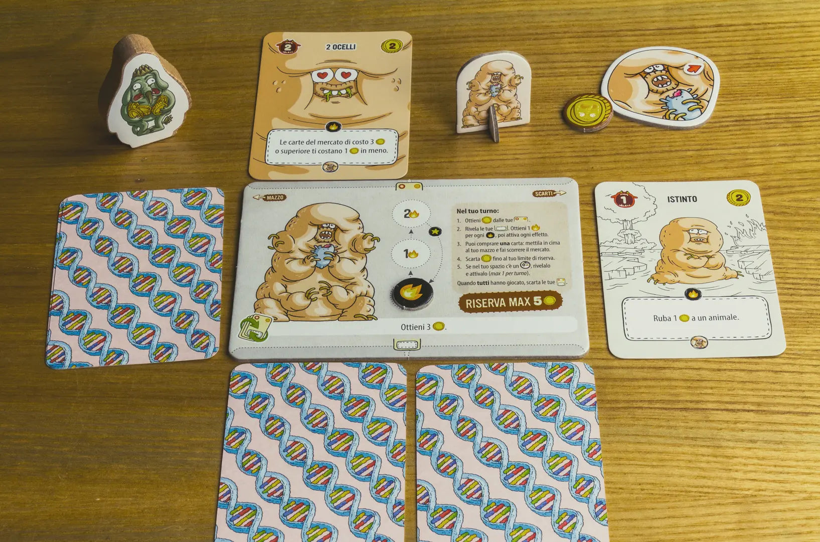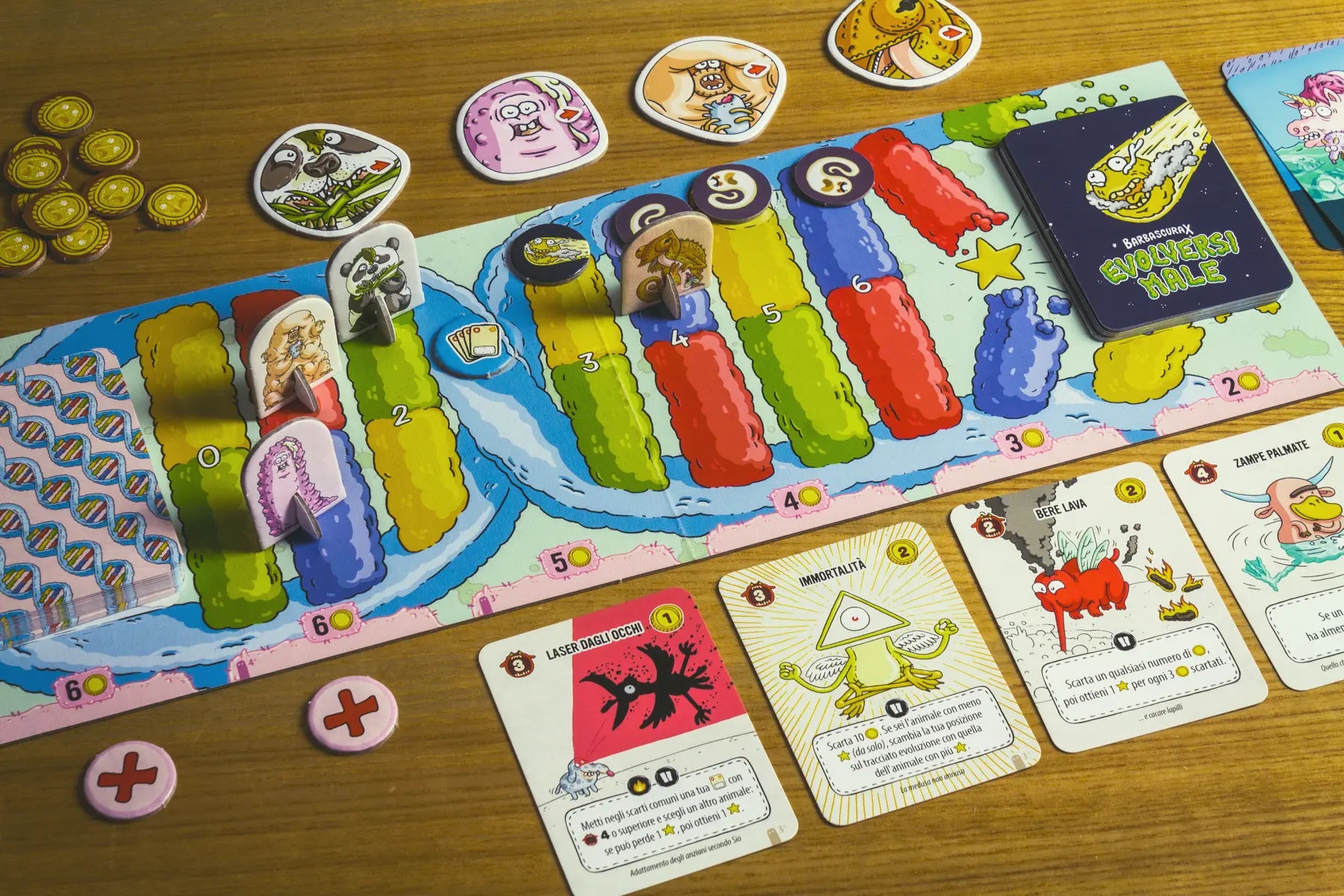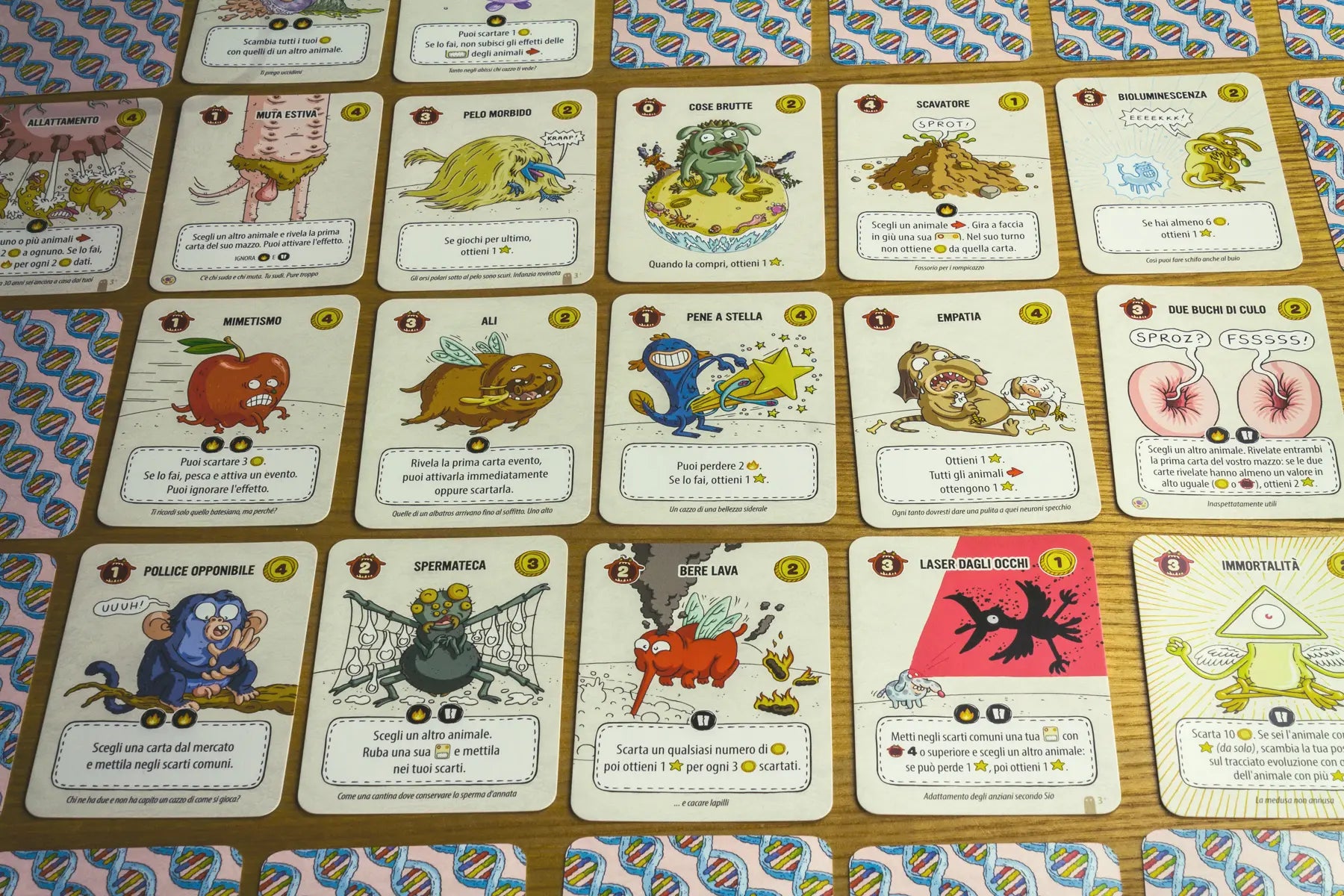 Presentati al cospetto dell’evoluzione prima dei tuoi avversari, possibilmente con più gettoni di loro, acquista i tuoi adattamenti evolutivi per sopravvivere ai catastrofici eventi di estinzione e usa i tuoi micidiali poteri per fermare gli altri animali.