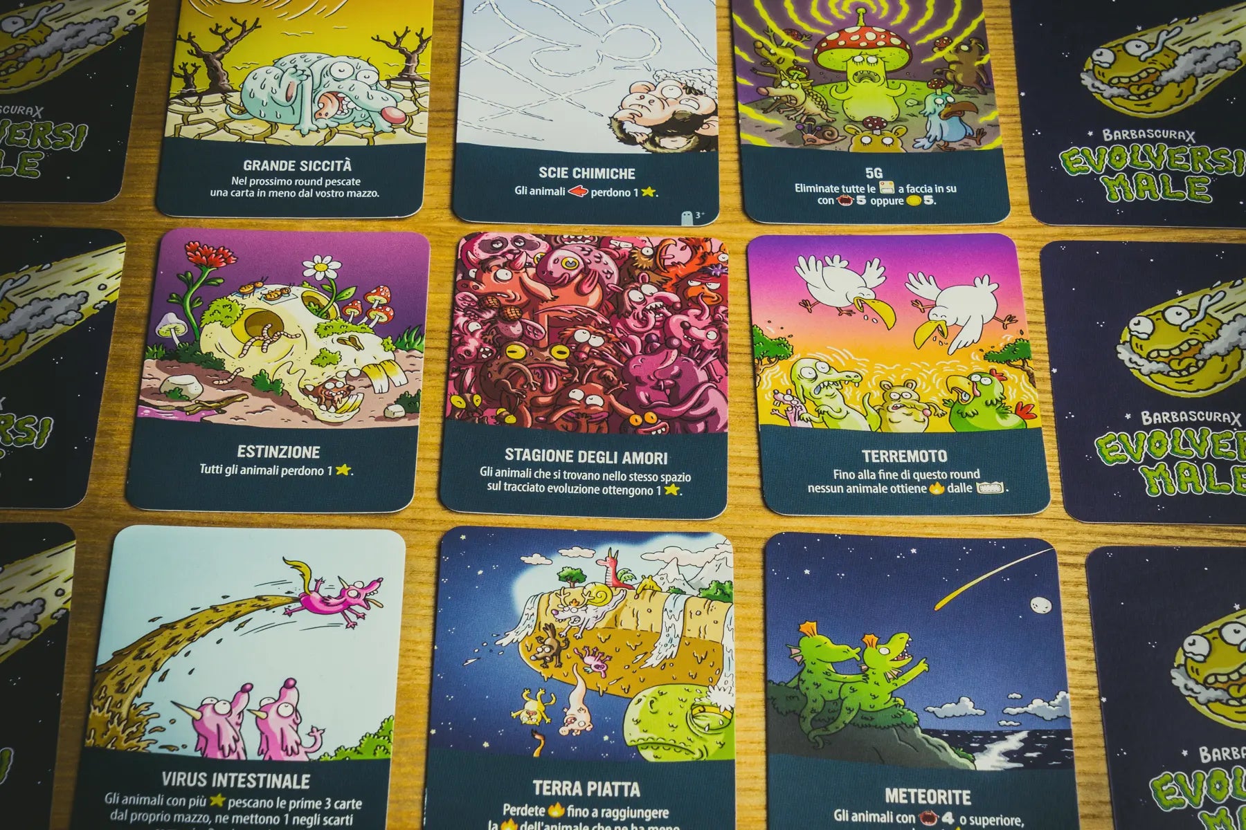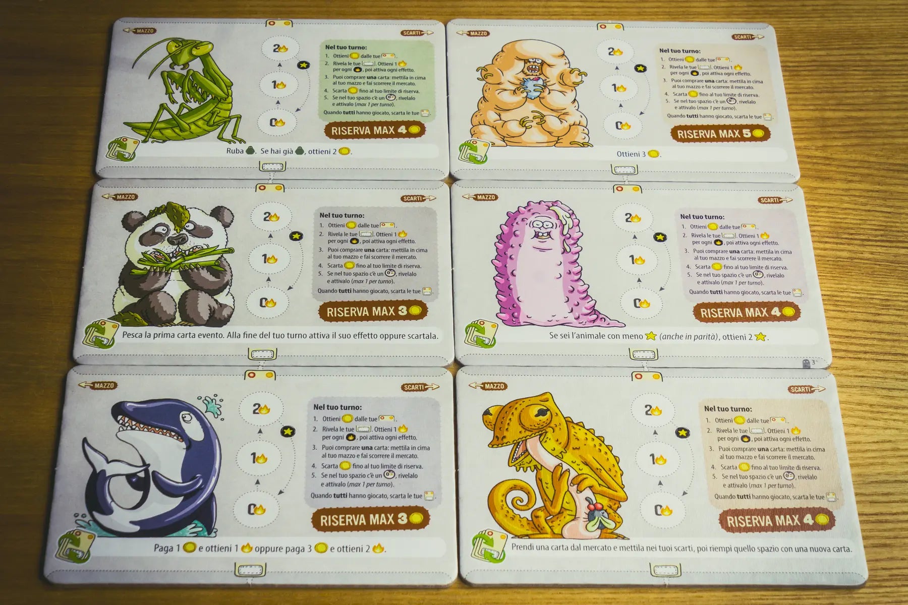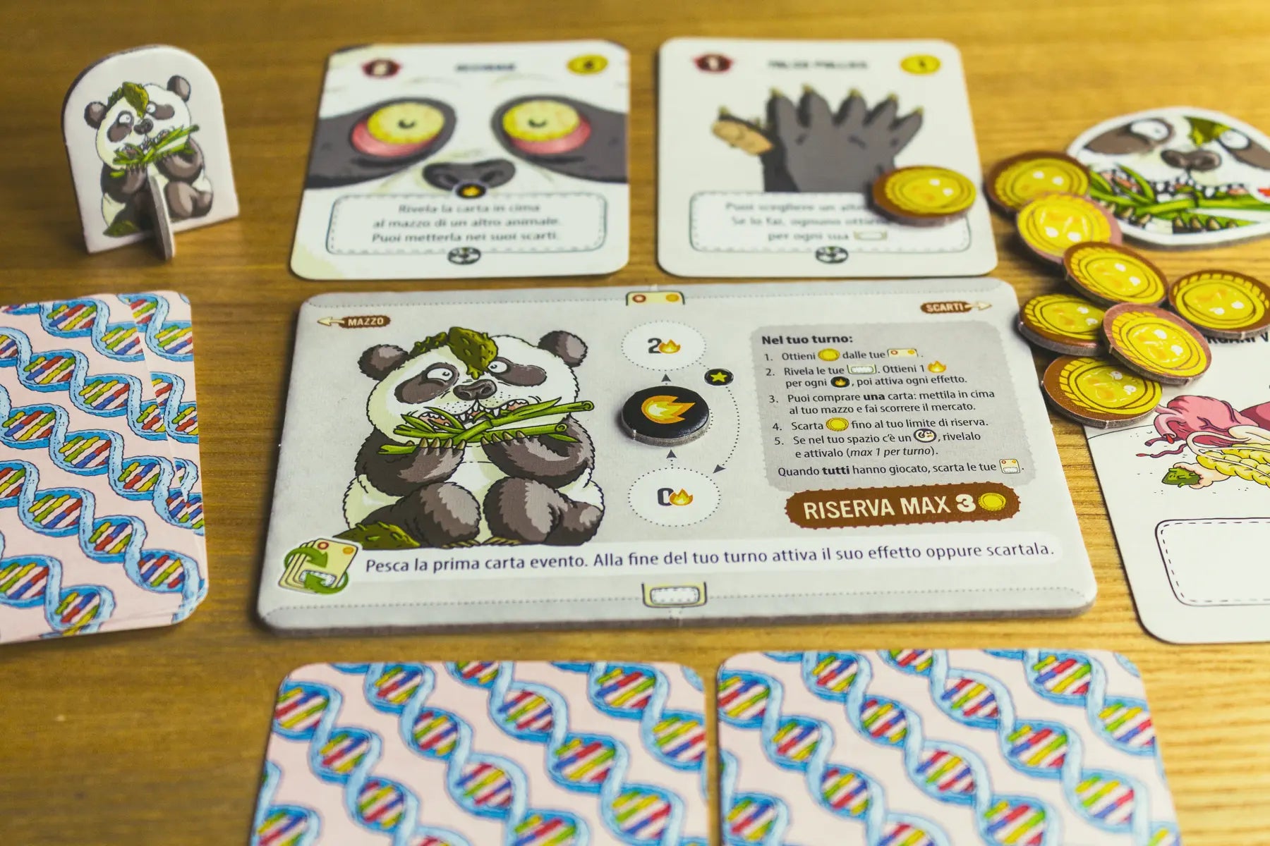 Presentati al cospetto dell’evoluzione prima dei tuoi avversari, possibilmente con più gettoni di loro, acquista i tuoi adattamenti evolutivi per sopravvivere ai catastrofici eventi di estinzione e usa i tuoi micidiali poteri per fermare gli altri animali.